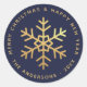 Adesivo Redondo Snowflake Navy Blue Faux Gold Elegant Christmas