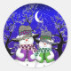 O boneco de neve e seu amigo ficaram debaixo das árvores olhando na lua.