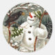 Esta imagem deslumbrante do postal alemão ilustra um corvo a visitar um boneco de neve rodeado por uma paisagem de inverno. A simplicidade e as cores resultam em uma bela imagem atraente. É perfeito para todas as suas necessidades de Natal e feriados.