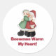 Um casal de boneco de neve abraça-se num abraço e o texto vermelho diz "Snowmen Warm My Heart!" em cartões de cartões de natal de boneco de neve, sacos de tote, canecas, ímanes, T-shirts e muito mais.
