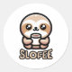 Adesivo Redondo Socorro! Cartoon de Bebendo de Café Justo e Leve