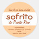 Sofrito (um condimento feito em Porto Rico usado para tudo, desde sopas a arroz) adesivo em pêssego claro e laranja com um modelo que pode ser personalizado para incluir seu nome, marca, slogan, ingredientes, etc. Também pode ser usado em inglês como um cozido ou feito por adesivo para todas as suas necessidades.