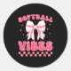 Adesivo Redondo Softball Vibes Softball Couqette Groovy Softball G