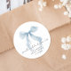 Elegant stickers for your bridal shower invitations, party favors and thank you cards featuring a blue coquette bow watercolor, "something blue before I do" in a chic script, and the bride's name and the shower date in classic serif typography.