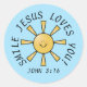 Adesivo Redondo Sorria Jesus Te Ama Pau Azul Amarelo