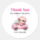 Obrigado de festas que você cola com uma ilustração caprichosa. Uma preguiça rosa dirigindo em um conversível rosa. Adorável.
