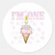 Um único design de primeiro aniversário em T-shirts de primeiro aniversário, fatos-chave, botões, bolsas e muito mais, com um bonito bolo de aniversário de sorvete cor-de-rosa, com uma vela e um texto cor-de-rosa que diz "Eu sou Um"!
