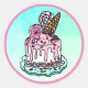Adesivo Redondo Sorvete Cone Rosa Bolo Sprinkles de Bolo de Aniver
