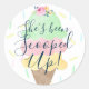 Adesivo Redondo Sorvete de Casamento 'Ela Foi Levada' Chá de Noiva