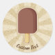 Ícone do sorvete de chocolate sobre fundo bege verde com texto personalizado.