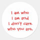 Adesivo Redondo Sou quem sou e não me importo com quem você é.