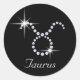O design de vidro cintilante apresenta o símbolo zodíaco / astrológico para Taurus em rochas de diamante sobre fundo preto. Taurus é designado para esse nascer de 21 de abril até 20 de maio