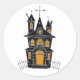 Adesivo Redondo Spooky Halloween assombrada cerca de laranja preto