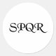 A abreviatura de "Senatus Populusque Romanus" que traduz como "O Senado e as pessoas Romanas" em latina.