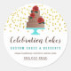© 2021 Socialite Design Inc. Vedantes de embalagens de padaria com um adorável design de um confete de aparência de folha de ouro e um bolo elegante. Personalize com seu nome comercial de padaria para promover sua empresa.