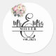 Este adesivo de forma redonda é mostrado com um nome personalizado Sr & Sra. impressão, personalize e mude o nome e o ano para o seu com este modelo.