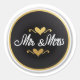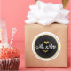 Mínimo e eterno de etiqueta de casamento em caligrafia branca e negra com pequenos corações ouros. Um toque elegante para favores de casamento, sacos de presentes ou para selar envelopes.