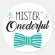 Sr. Onemagia, o primeiro aniversário da festa temida. Use este adesivo para favoritos para festas e muito mais! Tema de tempo de arco hipster bonito.