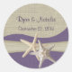 Starfish e burap parecem adesivos em roxo. Altere o texto para atender às suas necessidades. Combina com nossa design de casamento "Beach Amore Starfish", convites.