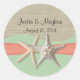 Starfish e burap parecem adesivos em coral-de-concha. Altere o texto para atender às suas necessidades. Combina com nossa design de casamento "Beach Amore Starfish", convites.