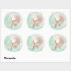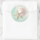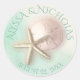 Watercolor inspirou o adesivo de casamento de praia com noiva e noiva e a data do casamento. Design de aqua de hortelã com estrelas e dólar.
