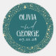 Etiquetas de casamento de chá e ouro com um céu noturno estrelado e nomes de casais