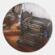 Adesivo Redondo Steampunk - máquina de escrever - o mensageiro