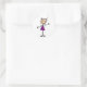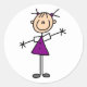 Um adesivo personalizável com figura de palito num vestido roxo.