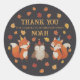 Add a touch of woodland magic to your celebration with this adorable autumn woodland thank-you sticker featuring the text “Thank you for coming to my birthday party – Noah”! With two playful foxes and a sweet owl surrounded by softly falling fall leaves, this whimsical boho watercolor design is perfect for a boy or girl birthday with a fall or harvest theme. The yellow text, font, and dark grey background color can all be customized to match your style. Part of a matching woodland birthday collection with invitations, favor bags, thank-you cards, party supplies, gifts, and decor. Ideal for autumn, rustic, boho, or nature-inspired birthday celebrations!