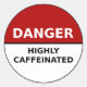 Perigo - Altamente Cafeinado - adesivo de aviso em vermelho, branco e preto.
