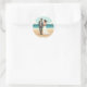 Inclui 20 pequenos adesivos numa única folha. Um adesivo adorável com um casal feliz em trajes de casamento em uma praia serena, perfeito para casamentos e casais.