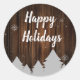 Adesivo Redondo Sticker Rustic Wood Happy Holidays