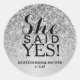 Adesivo Redondo Sticker - Silver Glitter Ela Disse Sim