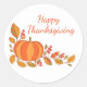Um adesivo grande redondo mostrado com um impressão de abóbora de Ação de Graças. Personalize este item ou comprar como está. com.