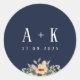 Adesivo Redondo Stickers, Elegante monograma azul floral