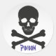 Um adesivo redondo mostrado com um impressão de crânio de Halloween. Personalize este item ou comprar como está. com.