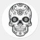 Um adesivo redondo mostrado com um impressão de crânio de Halloween. Personalize este item ou comprar como está. com.