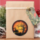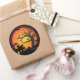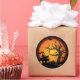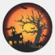 Um adesivo de forma redonda mostrado num impressão de casa assombrado no Halloween. Personalize este item ou comprar como está.