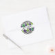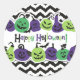 Um adesivo redondo mostrado com um impressão festivo de abóboras de Halloween. Personalize este item ou comprar como está. com.