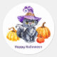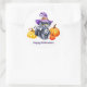 Um grande adesivo redondo mostrado num impressão de gato preto de Halloween. Personalizar este item ou comprar como está. imagem de estoque freepik.com