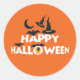 Um adesivo redondo mostrado com um impressão de halloween feliz festivo. Personalize este item ou comprar como está. com.