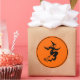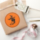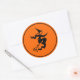 O adesivo redondo é mostrado com uma impressão de bruxa de Halloween. Tamanho grande mostrado Personalize este item ou comprar como está. com.