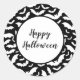 Um adesivo redondo pequeno é mostrado num impressão de morcegos assustadores do Halloween. Personalize este item ou comprar como está.