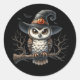Maldita Coruja das Bruxas em um palito de bruxas. Os autocolantes do Dia das Bruxas. Gatos, Bat, Pumpkins, vassouras e caldeiros. Excelente para convites e papéis de carta de Halloween. Ideias de artesanato do Dia das Bruxas.