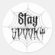 Um pequeno adesivo redondo é mostrado num impressão de "Dia das Bruxas" assustador. Personalize este item ou comprar como está.