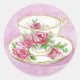 Minha aquarela original de xícara e pires com um belo design floral de rosas cor-de-rosa, como adesivos.