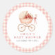 This adorable circular sticker features our cute blush pink vintage pram brimming with watercolor strawberries and tiny white blossoms and a sweet pink bow - perfectly framed by a soft pink gingham border. Personalized with the baby shower details, this thoughtful sticker is as lovely to look at as it is to use.