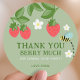 Say thank you berry much with these adorable strawberry birthday thank you stickers! Featuring hand drawn strawberries, a buzzing bee, and sweet floral accents on a green background, these personalized stickers are the perfect way to dress up party favor bags, envelopes, or thank you gifts.