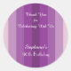 Que maravilhoso, personalizado Obrigado Sticker por um aniversário ou outra ocasião especial. Este adesivo festivo é decorado com um padrão de tiras roxas. Em cima, "Obrigado por Celebrar Conosco" (ou o seu texto personalizado), em letras brancas. Na parte inferior, Nome e Título do Evento. Um aniversário moderno, elegante e chic Obrigado Sticker. Todos os Direitos Reservados © 2017 Alan & Marcia Socolik.
