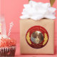 Adesivo Redondo Sua Foto, Salve a Data, Flores Douradas Vermelho M